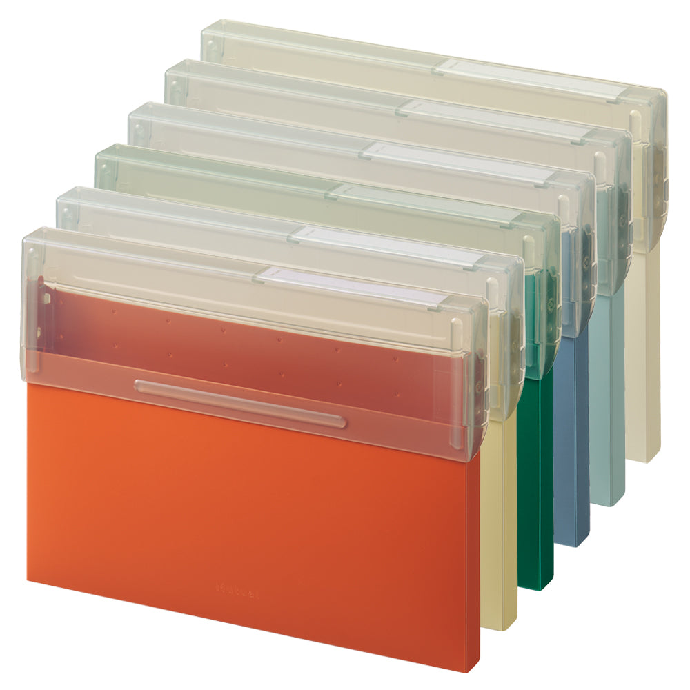 本体色に馴染む透明グレーのフタには見出しが付いており、分類がしやすいです。
