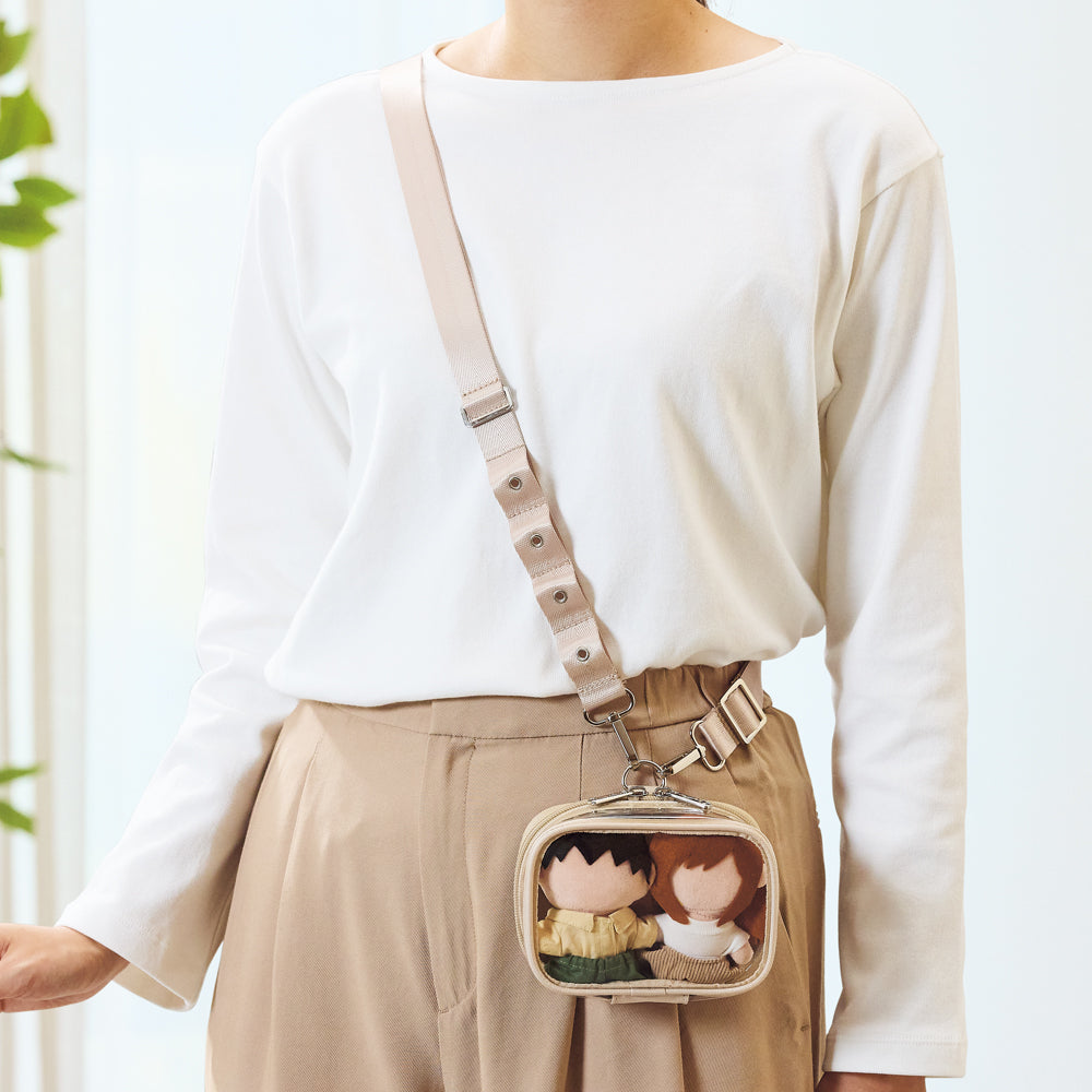 取り外し可能なストラップが付いた、ぬいぐるみや文具・コスメ入れにおすすめのポーチです。