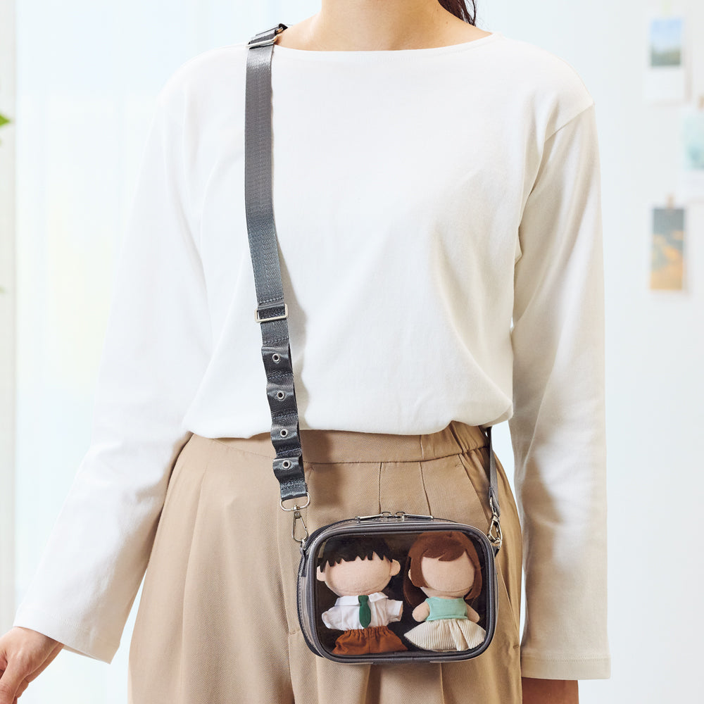 取り外し可能なストラップが付いた、ぬいぐるみや文具・コスメ入れにおすすめのポーチです。