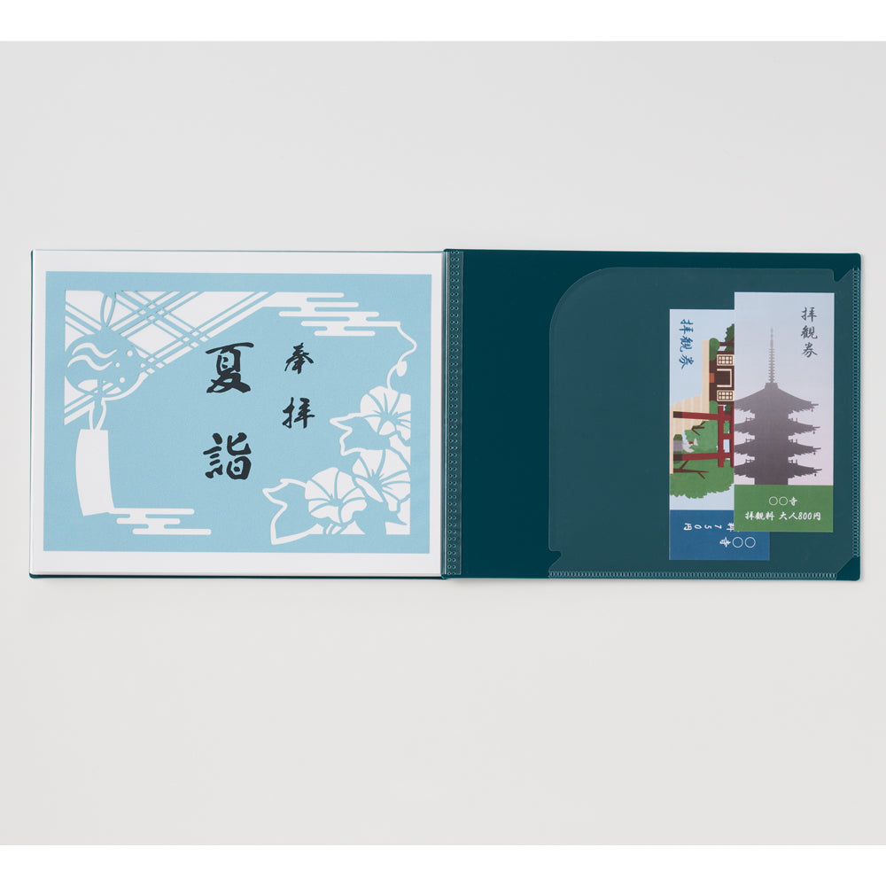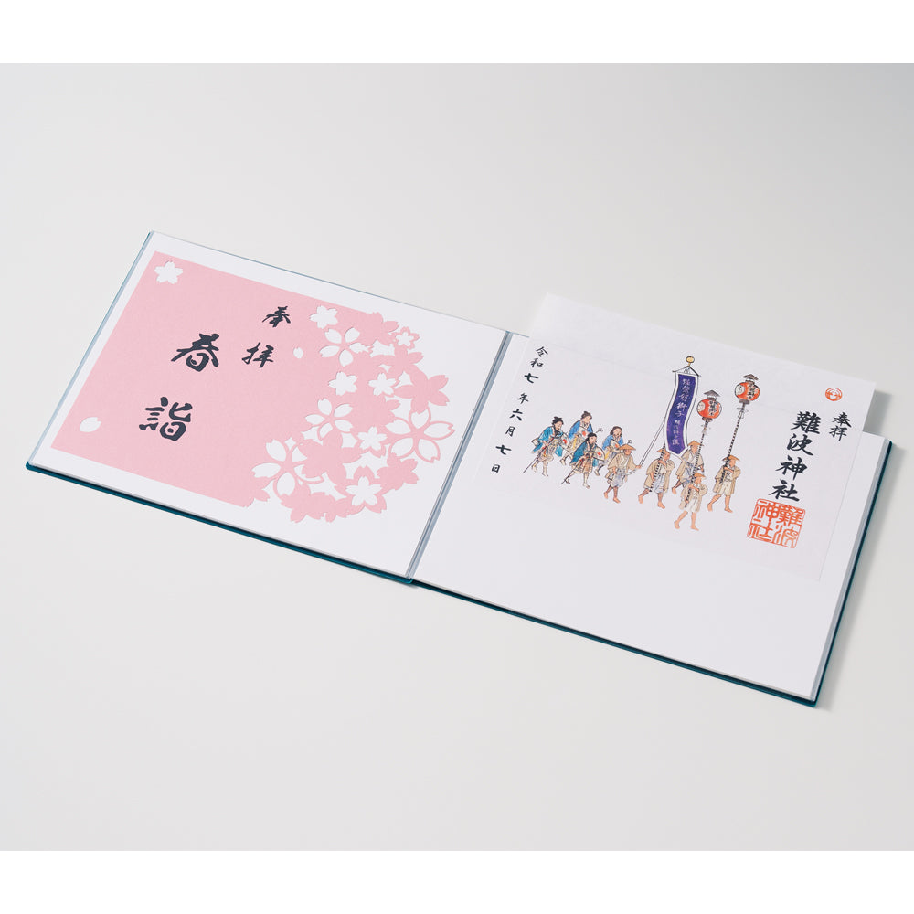 中台紙を挟んで、おもて・うら両面に収納できるジャバラポケットタイプの御朱印帳です。