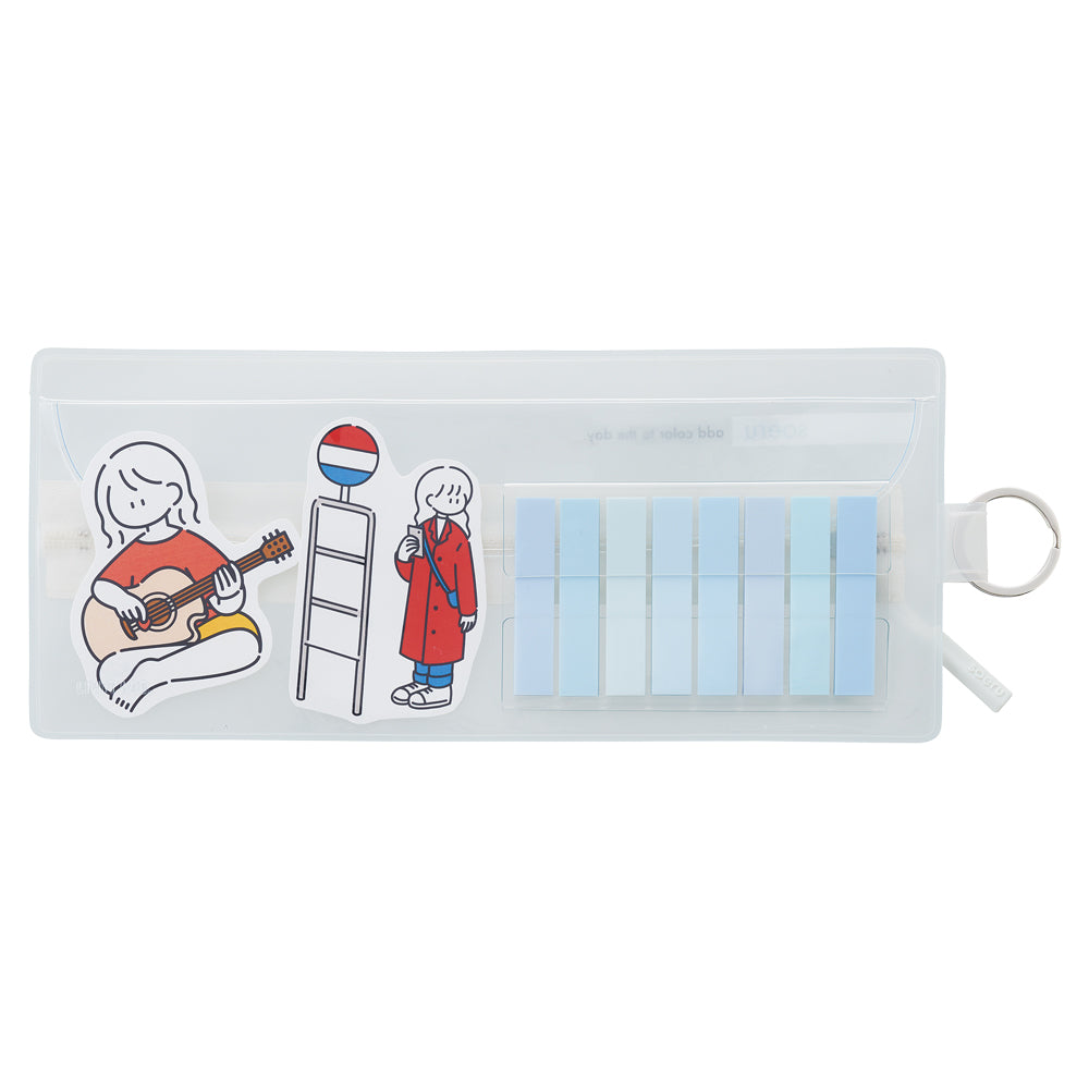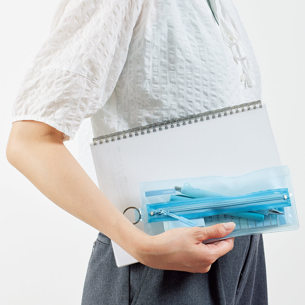 ステッカーやふせんを見せながら収納できる背面ポケット。