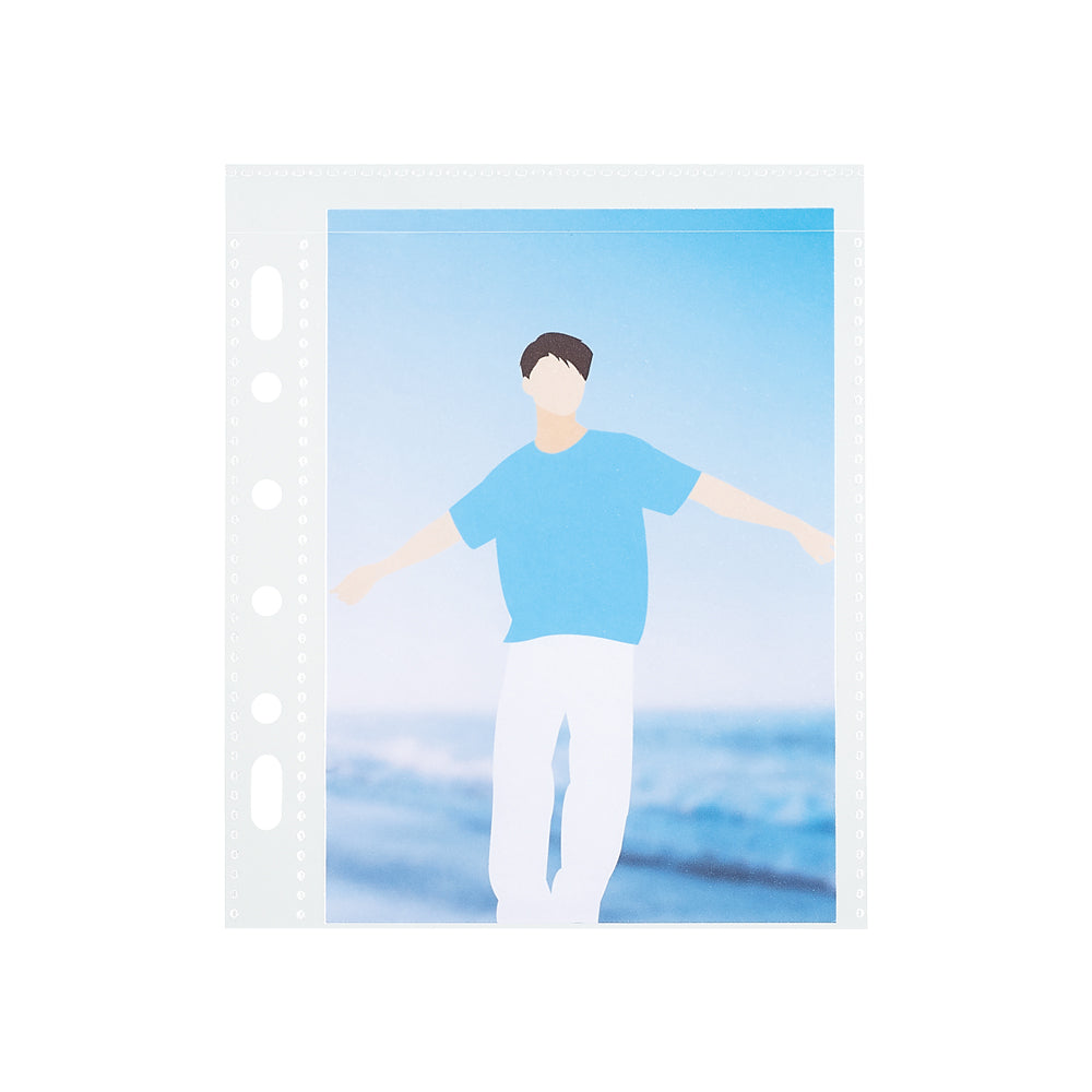 トップインタイプ。スリーブに入れたL判写真が入る。コレクションファイル ミニ(F-3320・F-3321)やmyfaシリーズバインダー(N-3320、N-3390、N-3391)などのミニ6穴バインダーに収納可能。