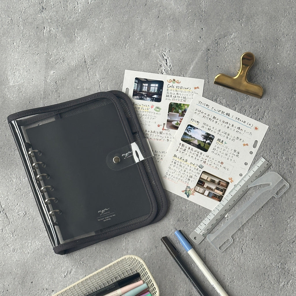 JIS規格の多穴リーフもとじられるミニ6穴とじ具のバインダーです。